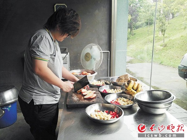 记者在长沙生态动物园配料间看到,为了保证饮食安全卫生,在动物餐制作过程中,从分拣到清洗,再到配餐,所有的食材每一道程序都严格把关;为了保证动物的营养均衡,根据动物的不同食性、不同食量,还会按照一定的营养比例搭配不同食材。由于猩猩跟人类的饮食很接近,主食是馒头、米饭、窝窝头,搭配香蕉、提子、青菜等水果蔬菜;新鲜的竹笋是给大熊猫准备的,除了竹笋和窝窝头外,动物园每天还给每只大熊猫准备了100公斤经过清洗消毒的新鲜竹子;天鹅的食物比较讲究,有胡萝卜、青菜、鸡蛋、杂粮窝窝头、玉米、小鱼、泥鳅等……当然,夏日里,动物园除了正常的供应外,适当地为动物增加西瓜等多汁食物防暑是十分必要的。