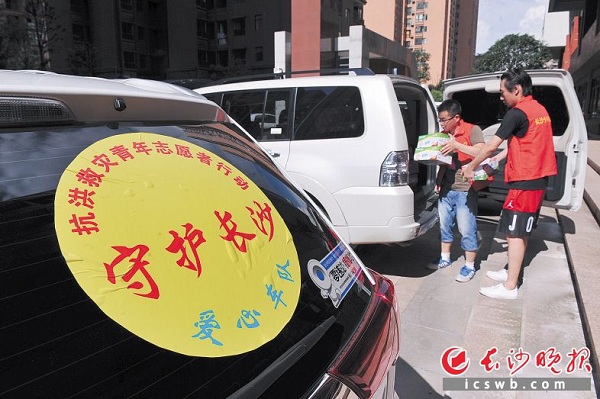 近日,“守护长沙·抗洪救灾”青年志愿者行动启动,志愿者将价值30万元的物资送到宁乡资福镇。 长沙晚报记者 小刘军 摄