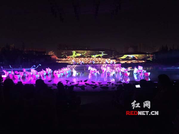 红网长沙7月26日讯(时刻新闻记者 陈辉)“一曲心声蜚宇内,千秋沉醉到仙乡。”水底星灯点点,天空焰火营造出流星划过、谷雨倾泻。7月25日晚,2017年港澳青少年游学团一行来到长沙观看长沙市首台大型田园实景情境演出《浏阳河上》。光影中,伴随着银铃般的长沙童谣,渔舟缓缓划入舞台中央,这样轻灵、悠远的序曲,瞬间就拨动了港澳游学学子们的心弦。这群来自香港澳门的少年学子,被眼前的一幕幕画面吸引着……
