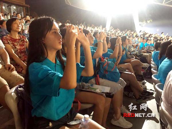 7月25日晚,2017年港澳青少年游学团一行来到长沙观看长沙市首台大型田园实景情境演出《浏阳河上》。