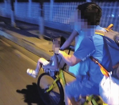 记者见状,一路小跑过去阻止这名男士继续骑行。“我也知道这样确实不太妥当,看着路不远,晚上又有点风才会骑车的。”男士擦着豆大的汗珠说,3岁的儿子和6岁的女儿都放在乡下读书,暑假接来长沙玩了一个月,第二天就要回家了。“在湘江风光带滑冰后,孩子们意犹未尽,还要吹风,我看着共享单车有个前篮子,就让儿子坐前面试一下,骑行起来很吃力不好把控。”