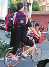 在湘雅路西口经营摩的的王师傅告诉记者,近期他傍晚总能见到几个骑车载娃的单车,有一次还差点起刮擦。