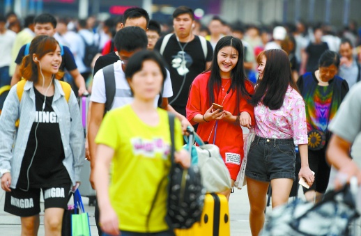 8月31日,长沙火车站,返程的旅客走出车站。当天,为期62天的2017年暑运落下帷幕,铁路输送旅客人数再创历史新高。因学生流和务工流同时涌现,客流高峰还将持续一段时间。湖南日报记者 郭立亮 摄