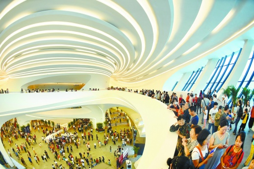 8月31日,长沙梅溪湖国际文化艺术中心大剧院,大批市民在现场参观。当天,目前世界上最大的“芙蓉花”建筑——长沙梅溪湖国际文化艺术中心大剧院首次对公众开放,广大市民零距离感受“芙蓉花”的建筑之美。