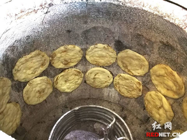 新疆的肉馕正在制作,面粉中包裹着牛肉,印上花纹,香。