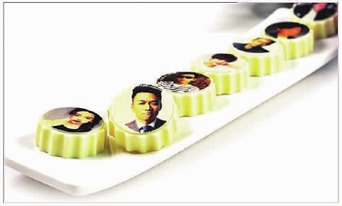 在一家名为可可之恋手工巧克力的店铺,一盒8个印有照片的月饼售价39.8元。据店家介绍,这一新品于9月17日刚刚上架,消费者只需提供照片就可以定制,采用进口食用墨水进行3D打印,“促销价格39.8元,再过几天便会涨价至69.8元。”
