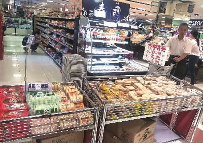 平和堂负一楼生活超市内摆放了不少传统月饼。记者 朱蓉 摄