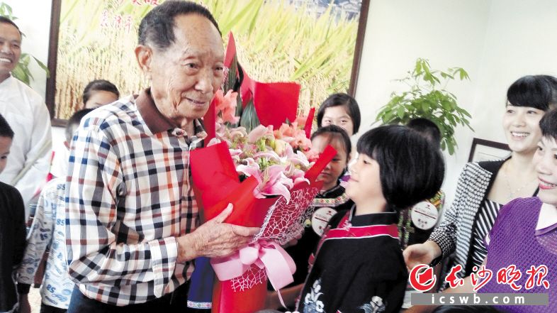 昨日,袁隆平院士来到孩子们中间,与孩子们亲切交流。长沙晚报记者 周和平 摄