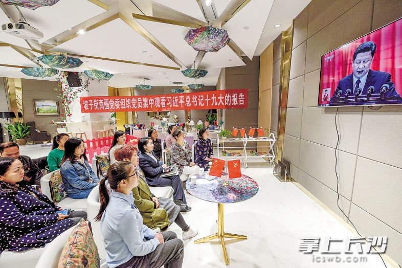 昨日上午,天心区坡子街商圈党委组织党员集体收看十九大开幕会。长沙晚报记者 陈飞 摄