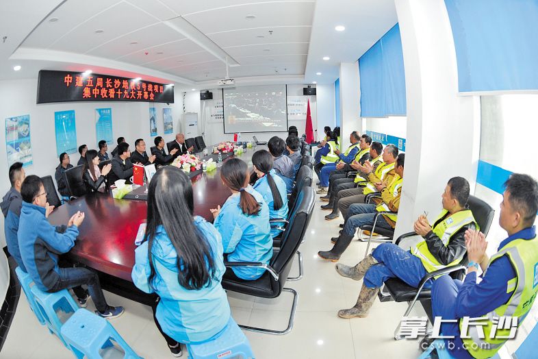 昨日上午,中建五局长沙地铁5号线指挥部全线各项目部会议室,不时传出阵阵掌声,数百名建设者、农民工党员通过网络直播观看了十九大开幕会。