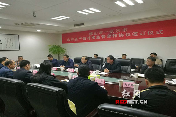 11月2日,佛山与长沙两地食安办、食药监、农业六机构联合签署《加强区域间鲜活水产品产销对接监管合作框架协议》。