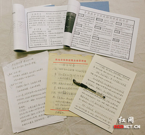 一叠叠字迹工整的笔记,一本本被装订成册的学习资料,诠释了黄国麟“人老心红”活到老学到老的先进形象。