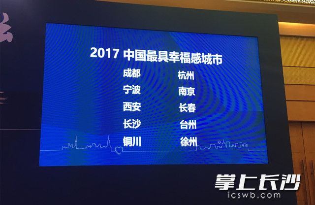 与长沙一起被推选为“2017中国最具幸福感城市”的还有:成都、杭州、宁波、南京、西安、长春、台州、铜川、徐州。