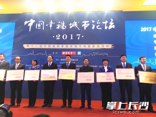 长沙晚报掌上长沙12月7日北京讯(特派记者 钱娟)喜大普奔,长沙又领回一项大奖,荣获“2017中国最具幸福感城市”。从今日举行的中国幸福城市论坛上传来消息,第十一届中国最具幸福感城市调查推选活动结果揭晓,长沙再度入选“中国最具幸福感城市”,这是长沙第十次获此殊荣。市委常委、常务副市长舒行钢赴京领奖并向与会嘉宾推介长沙。