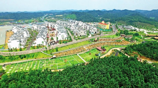 长沙县果园镇浔龙河生态艺术小镇居民集中居住区鸟瞰图。