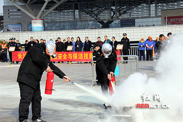 长沙火车南站地区举行消防安全应急处置比武。