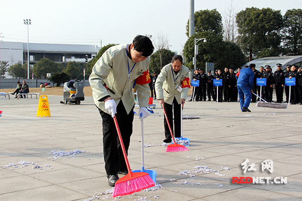 长沙火车南站地区的卫生保洁技能比武。