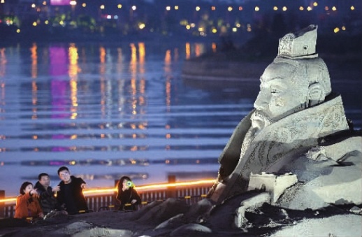 2月28日,长沙市橘子洲景区沙滩乐园,市民在观赏沙雕作品《汉武大帝》。见习记者 傅聪 摄
