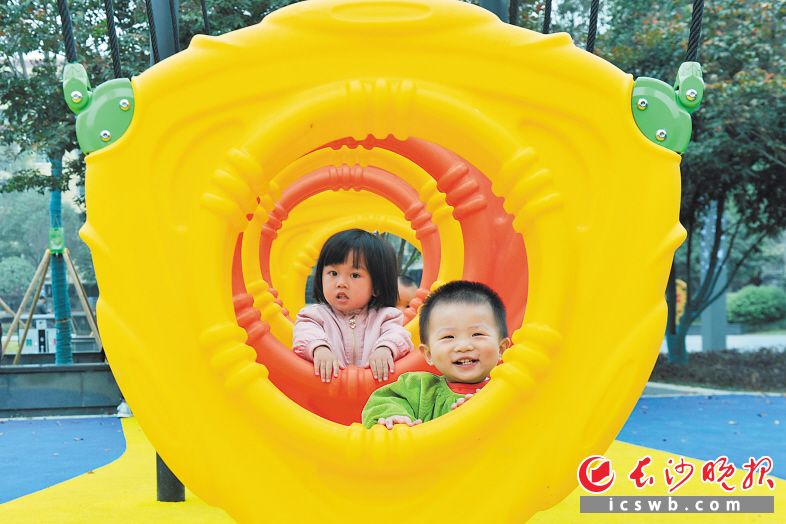 改造一新的岳麓区某小区游乐场内,孩子们在开心游玩。通过全面提质提档,长沙数百个老旧社区发生“蝶变”,居民幸福感在家门口升级。 长沙晚报记者 小刘军 摄