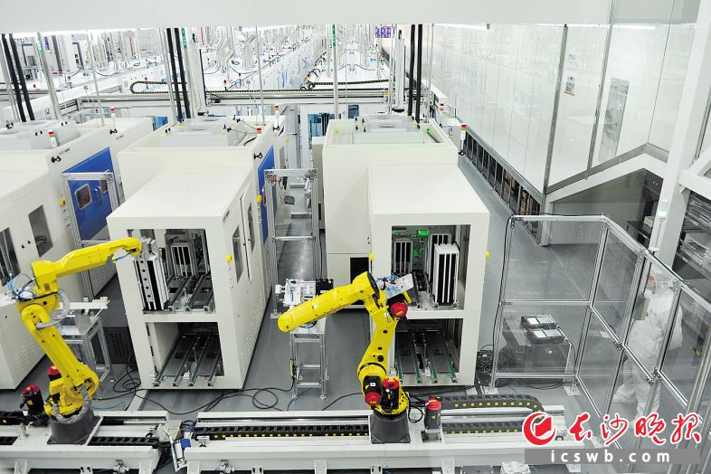 2017年,长沙实现地区生产总值10535.51亿元,成为中部第二个、中西部第四个GDP突破万亿元大关的城市。图为红太阳光电厂房内,新一代PERC电池智能制造示范线正在高效运转。长沙晚报记者 邹麟 摄