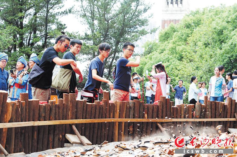 昨日,长沙世界之窗酒香四溢,“摔碗酒过端午”活动正式启动,邀请游客体验土家族摔碗酒民俗。长沙晚报记者 张洋子摄