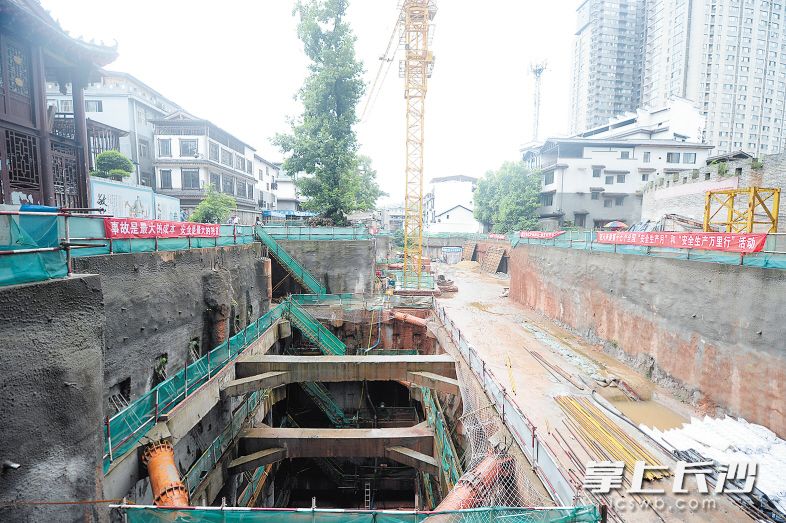在都正街旁,这个智能地下停车场正在建设中,共有20层,建成后将有效缓解都正街的停车难问题。 均为长沙晚报记者 余劭劼 摄