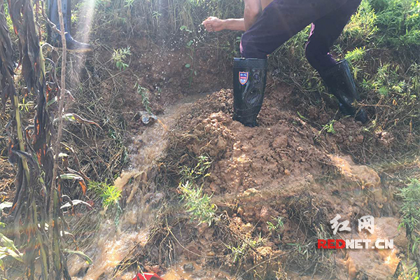 雨花区东山街道渔场社区浏阳河堤段发现涌水。