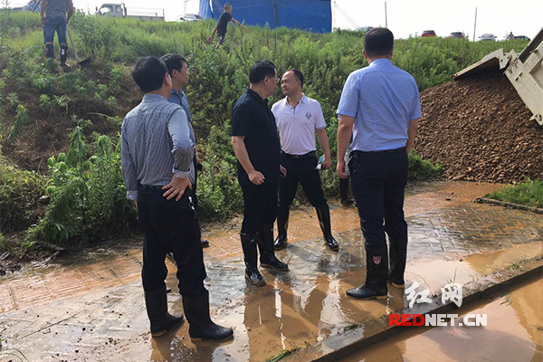 雨花区区委书记张敏(右三)现场指挥抢险。