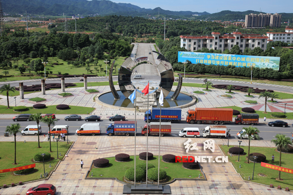 7日上午,50多台满装着食品和药品的爱心车辆从浏阳经开区出发,驶向受灾地区,支援灾区群众生活恢复和灾后重建。