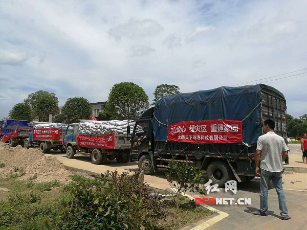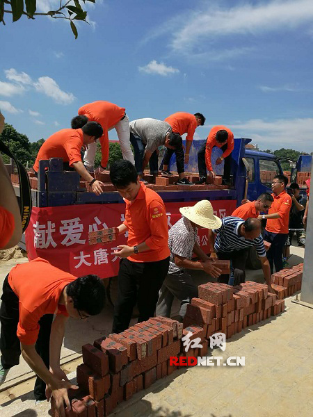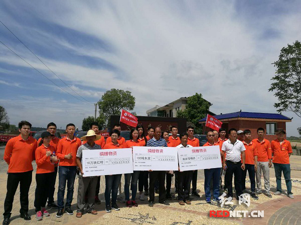 7月12日,大唐天下为宁乡回龙铺受灾村民捐赠价值十万余元的水泥、红砖等生产物资。