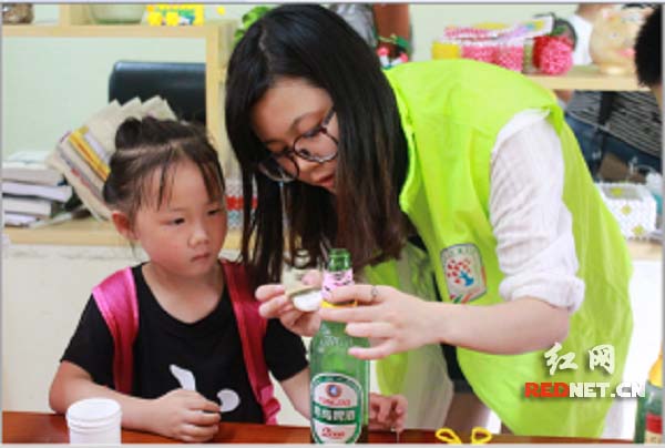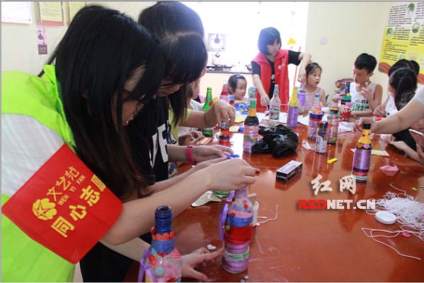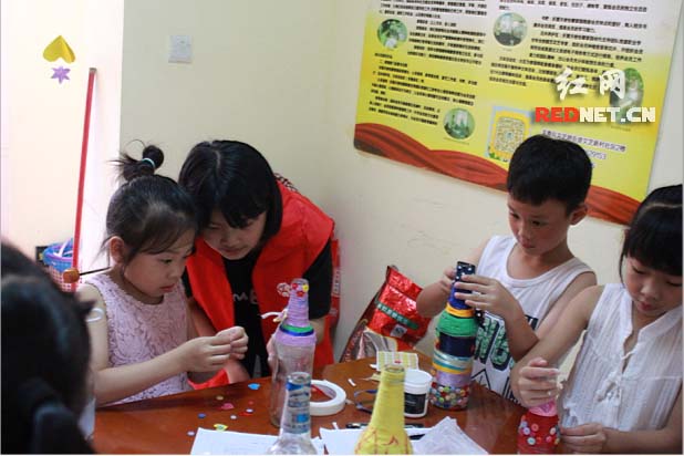 红网长沙7月13日讯(通讯员 雍思乐)为不断丰富辖区青少年暑假生活,进一步培养青少年的动手能力。7月13日上午,五彩课堂虹雨社工联合长沙市芙蓉区解放路文艺新村社区党员志愿者,在文艺新村社区组织青少年开展了“青春飞扬”主题的手工环保活动。今天开展的是手工环保活动第一期:DIY手工环保花瓶。