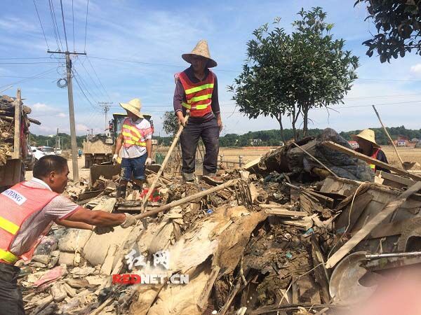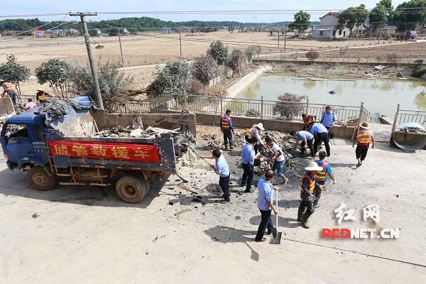 红网长沙7月14日讯(时刻新闻见习记者 雷昕)近日,在长沙市望城区乌山镇南中垸正在开展一场灾后重建大清洗行动。