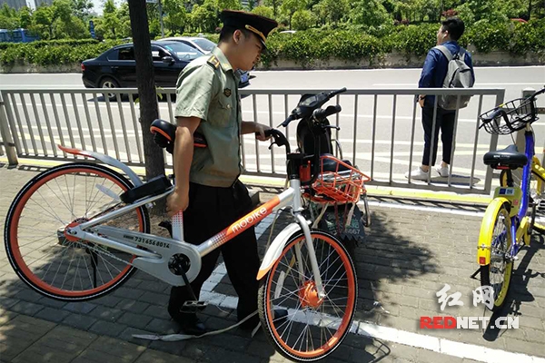在站区周边共享单车乱停乱放的问题上,火车南站城管中队联合综管办、交警现场勘查,划定共享单车规范停放点。