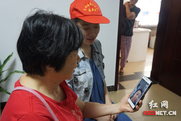 韶光社区居民许九英与长期居住在国外的女儿“微信会亲”。图片来源:长沙文明网