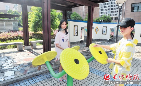 长沙县望仙桥社区公园一角。过去的违章建筑被拆除后建成了供居民健身休闲的社区公园。均为长沙晚报记者 贺文兵 摄