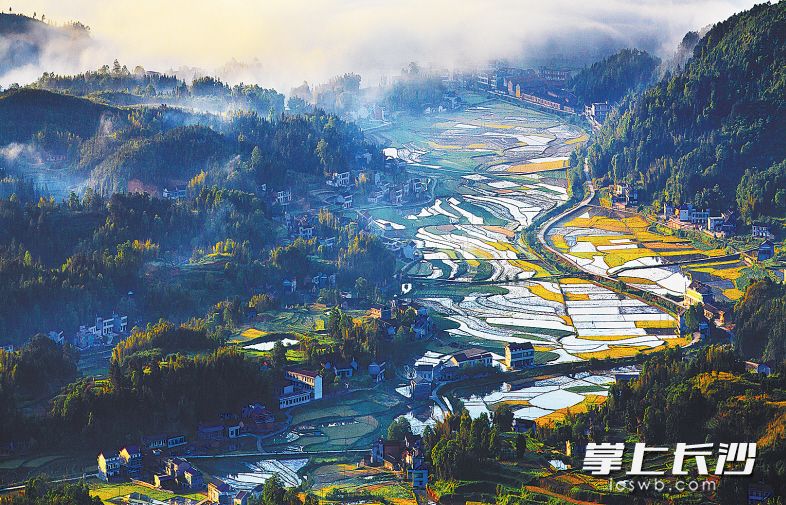雨后云雾缭绕的巷子口梯田,如油画般色彩斑斓;早春的大屯营百顷良田里,种下七彩的希望;盛夏时分的祖塔茶园,满眼皆是醉人绿意;金秋中的历泉公路两旁,车驶过稻田画出丰收轨迹……摄影师黄智斌,用脚步丈量着故乡的山水,用镜头捕捉着宁乡的四季轮回。作为此次大赛中获奖数量最多的摄影师,他的7幅作品记录了宁乡的山水之美,无不流淌着宁静之乡的水墨画意、满溢着悠悠乡愁之情。“家乡越来越美,怎能不爱上它?”他说。