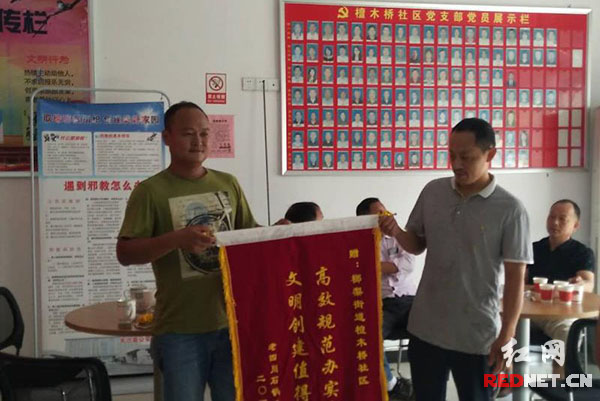 红网时刻9月5日讯(通讯员 袁盈)9月4日一大早,长沙县㮾梨街道檀木桥社区公租房一家门店的刘老板为社区送来一面锦旗,对社区文明创建“百日行动”的工作开展表示感谢。他说:“自从社区开展整治行动以来,我们门店前的环境整洁多了,乱停乱摆乱放的情况也没有了,车辆不拥堵了,店里的经营状况得到了明显改善!”
