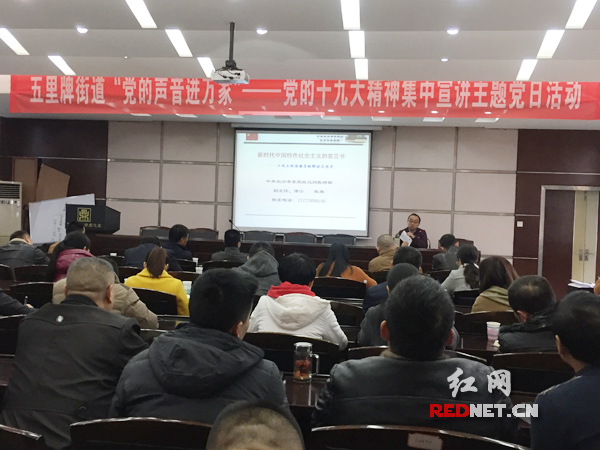 长沙市委党校陈果博士带领五里牌街道全体干部职工学习党的十九大精神。