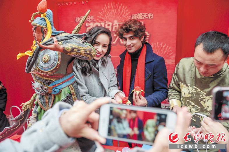 来自巴西和巴基斯坦的外国朋友现场拜师学艺,用面捏成了玫瑰,他们开心地拍照留念。均为长沙晚报记者 陈飞 摄