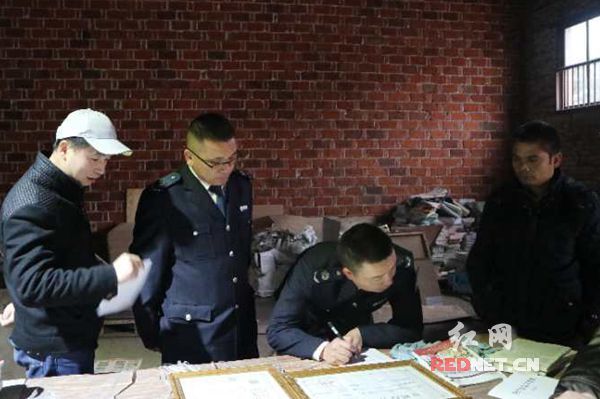 红网时刻长沙3月8日讯(记者 黄时中 通讯员 朱德军)“图书论斤卖,每斤11元起……”3月7日上午,长沙市天心区书院南路一家书店门口的音箱里不断传出的叫卖声,引起了执法人员注意。经过细致调查,这家书店“果然”涉嫌发行非法出版物。连日来,天心区文化市场综合执法局联合区工商分局、区公安分局、区城管执法局等多个单位联合行动,“扫”出了一批非法出版物。