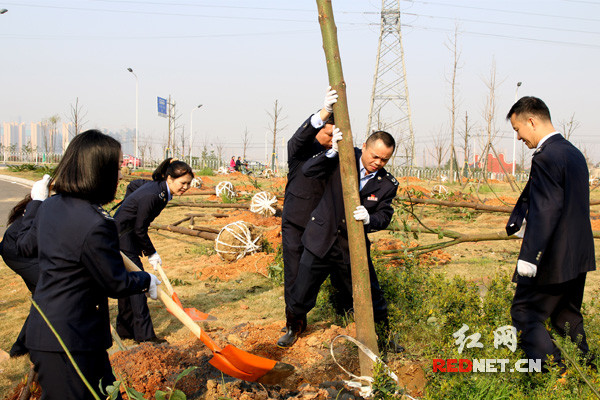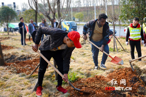 正值第40个植树节,芙蓉区开展全民义务植树活动,芙蓉区四大家班子成员、各区直部门、街道、社区、社会团体、道德模范及湖南农业大学的留学生等300多人参与植树。