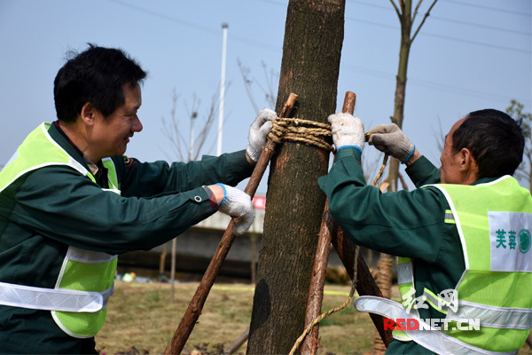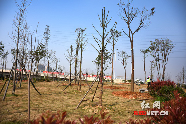为了提升红旗路跨浏阳河桥匝道防护绿地的绿化品质,芙蓉区园林局以植树节为契机,种下香樟树为骨架树种,今后再成片栽植湖南红樱、红梅、麦冬草等植物,将此处2万余平方米的绿地打造成集观赏、游玩于一体的东湖生态绿地。