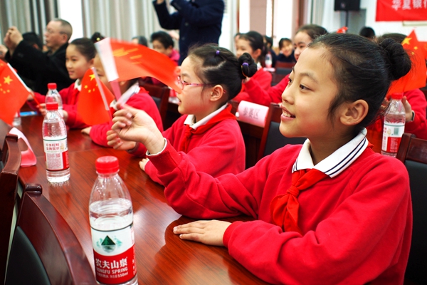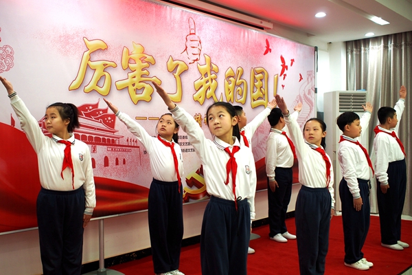 来自育华小学的学生们展现了中国少年的豪情壮志。图片来源:长沙文明网 记者 陈宇 摄