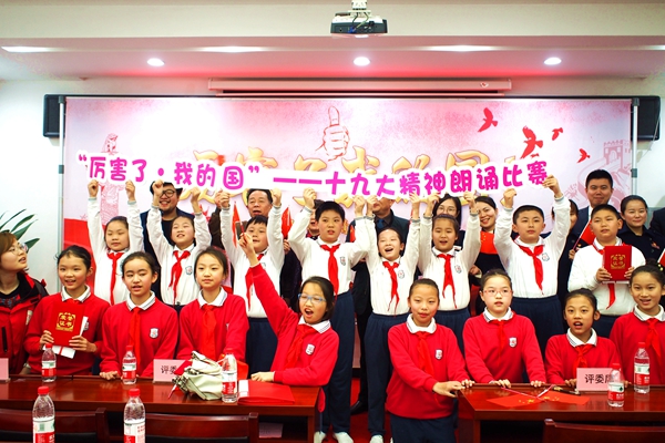 接连上演的朗诵将活动不断推向高潮。经过一个多小时精彩而激烈的比拼后,现场评委组最终评选出各级别奖项。优胜者不仅获得了金字红底的荣誉证书,更喜纳“党的十九大精神”系列读本。最后,全场参赛选手共同呐喊“厉害了·我的国!”,为朗诵比赛画上圆满的句号。(长沙文明网 记者 陈宇)