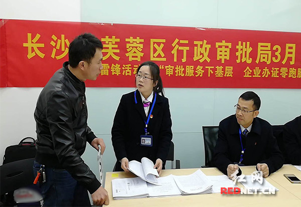 3月21日,长沙市芙蓉区行政审批局20余名党员干部将审批资料、电脑、勘查材料、打印机等搬进辖区某商业综合体,上门为即将开业的企业集中办理审批业务。