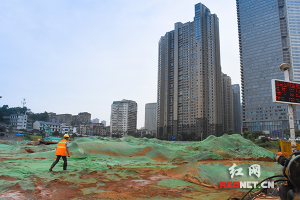 距离地铁4号线南湖路站三百多米一块1.15万平方米的区域,如今是黄土一片,打桩机、挖土机轰轰响着,施工人员紧张有序地为月底开挖基坑做准备。未来,一座两百米高的大厦将从这里拔地而起,成为湘江东岸一个金融地标性建筑,彰显“长沙外滩”的生机与活力。