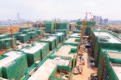 科技新城项目施工现场。楼板、柱拆模整体外观质量好、警示标志及消防设备配置齐全,在近日召开的长沙经开区2017年一季度建设工程质量安全大会上受到了通报表扬。蒋炼 摄