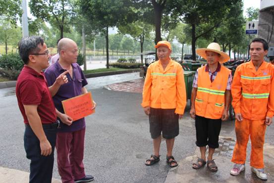 在环卫所,郭四军一行看望慰问了一线环卫工人,与大家一一握手,关切询问工作时间、劳动保护和降温防暑等情况,对他们为美化园区环境所做出的贡献表示敬意,并叮嘱环卫站要做好防暑降温工作,同时为他们送上夏日的清凉降暑物资,并通过他们向全园区广大奋战在一线的工作人员表示问候,向大家道一声辛苦。