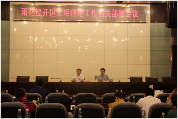8月1日晚,雨花经开区再次召开文明创建工作推进会。会议传达了区委、区政府相关会议和文件精神,并就下阶段有关工作进行动员和部署。雨花经开区党工委副书记、管委会主任李国军,党工委委员、管委会副主任邓波出席会议,各局办室负责人及相关责任人员近百人,参加此次会议。