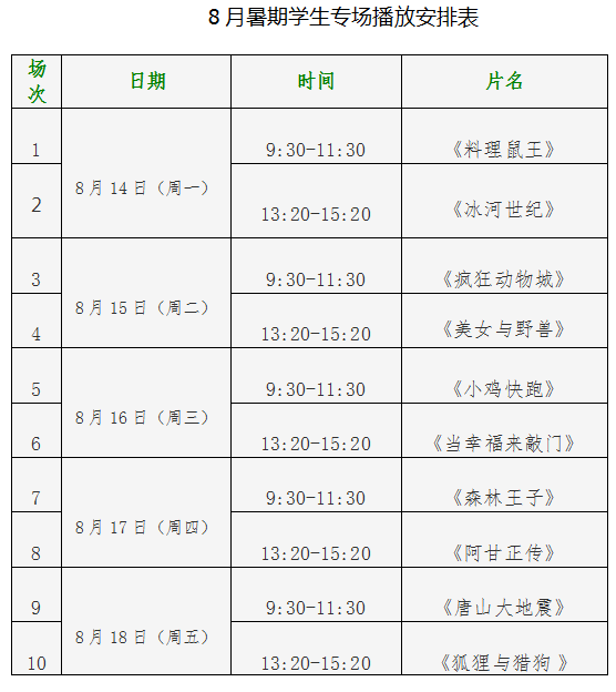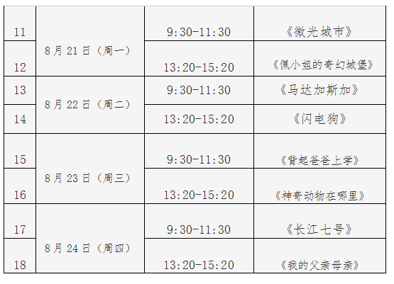 活动期间,浏阳经开区金阳文化旅游管理有限公司每天上午9:30至11:30,下午1:20至3:20,将各播放一部儿童电影或儿童动画片。